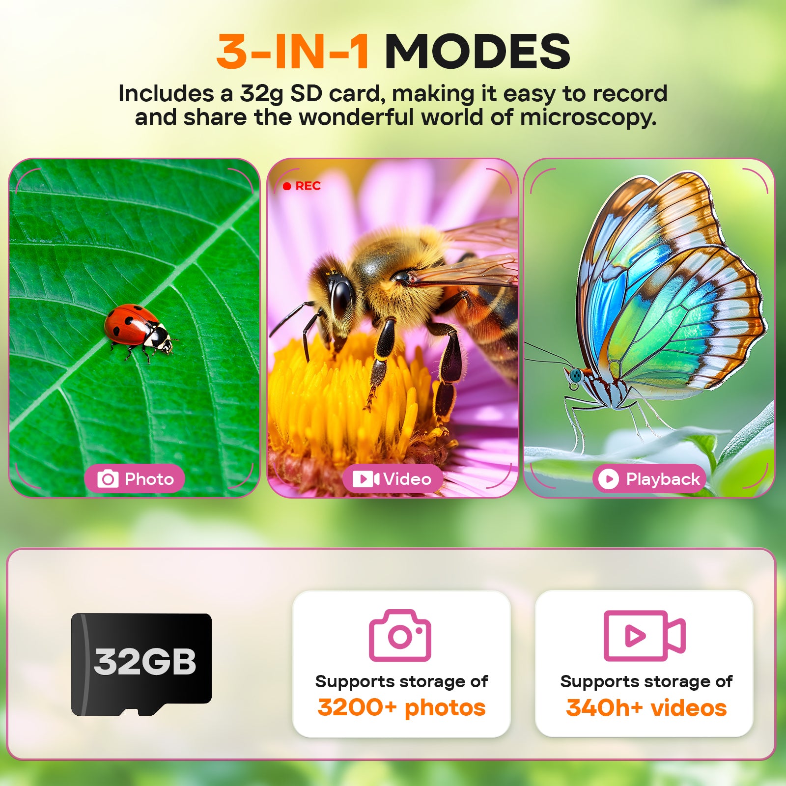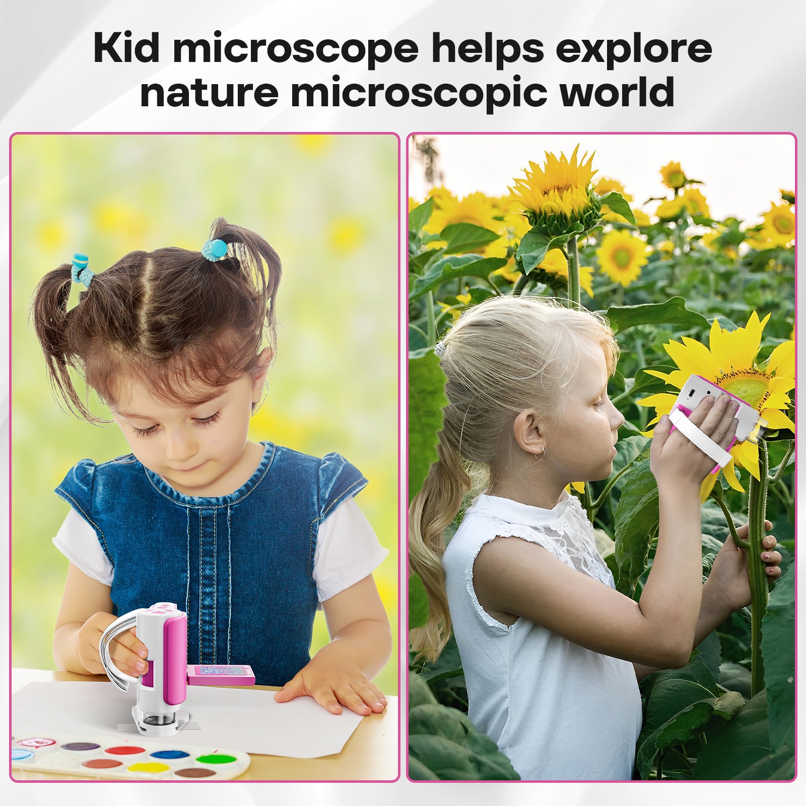 - Functions as a fun digital microscope designed for kids' learning.