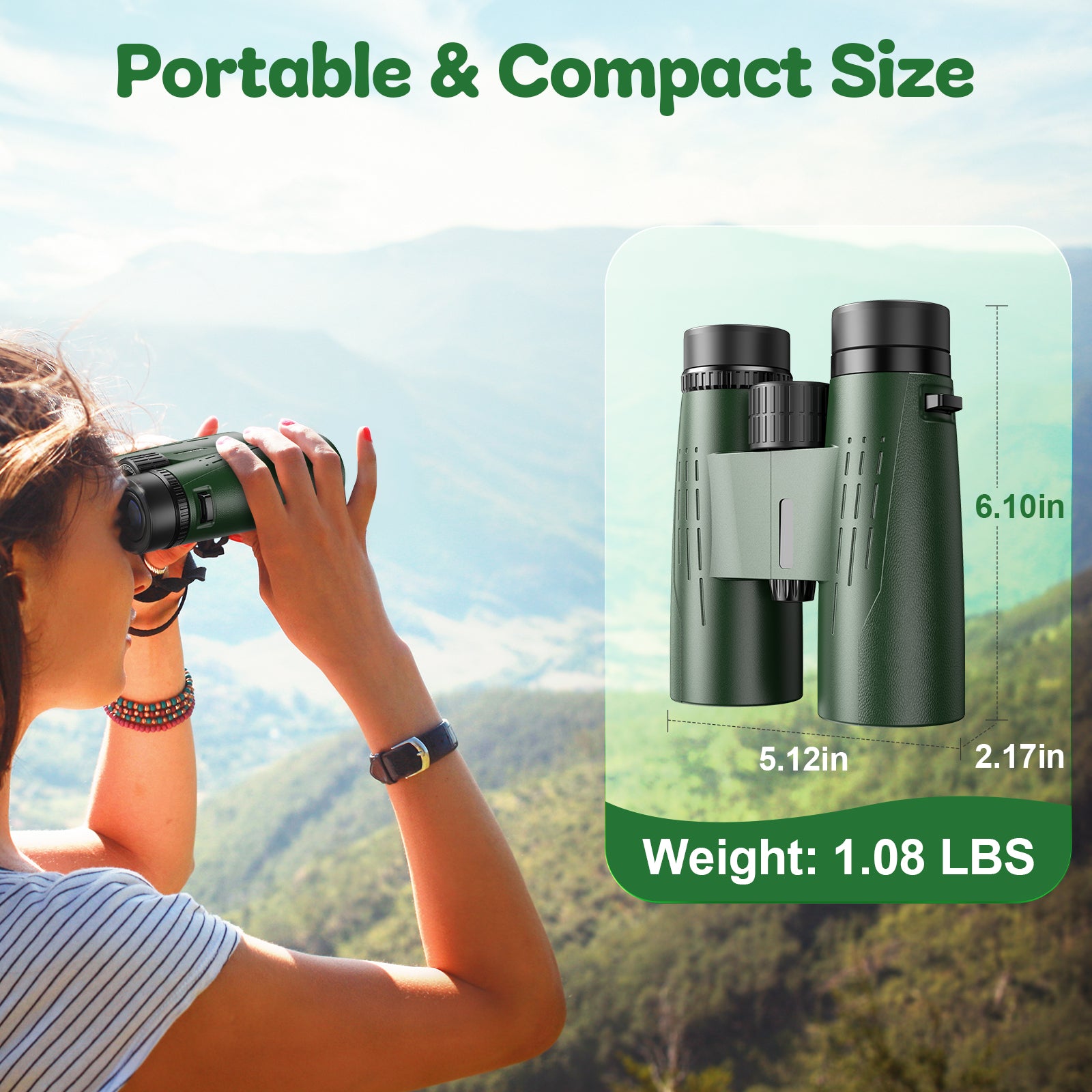 12X42mm Binoculars for Adults -- Get clear and detailed views with 12X magnification and 42mm large objective. These binoculars for adults are perfect for tracking moving objects during birdwatching or sports.