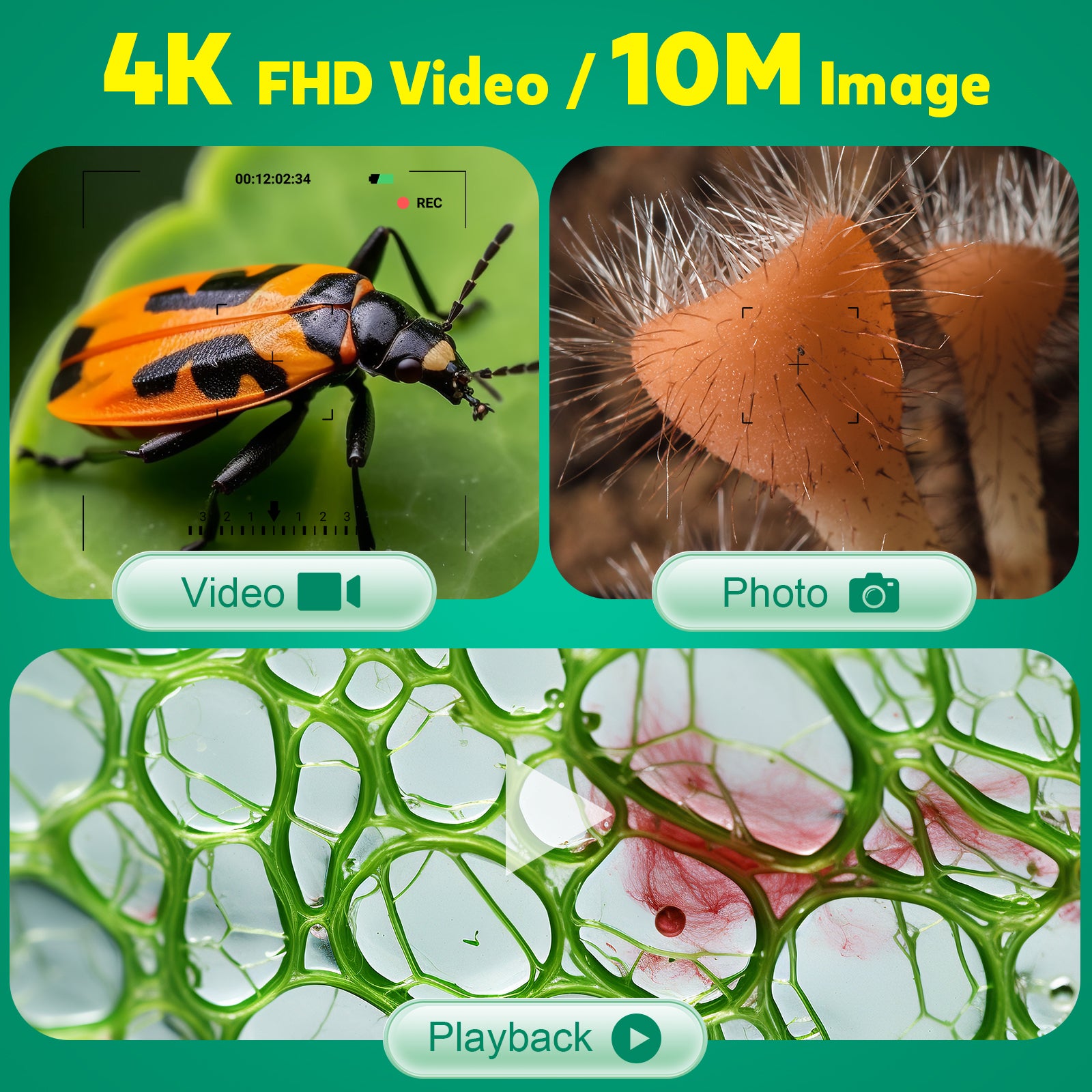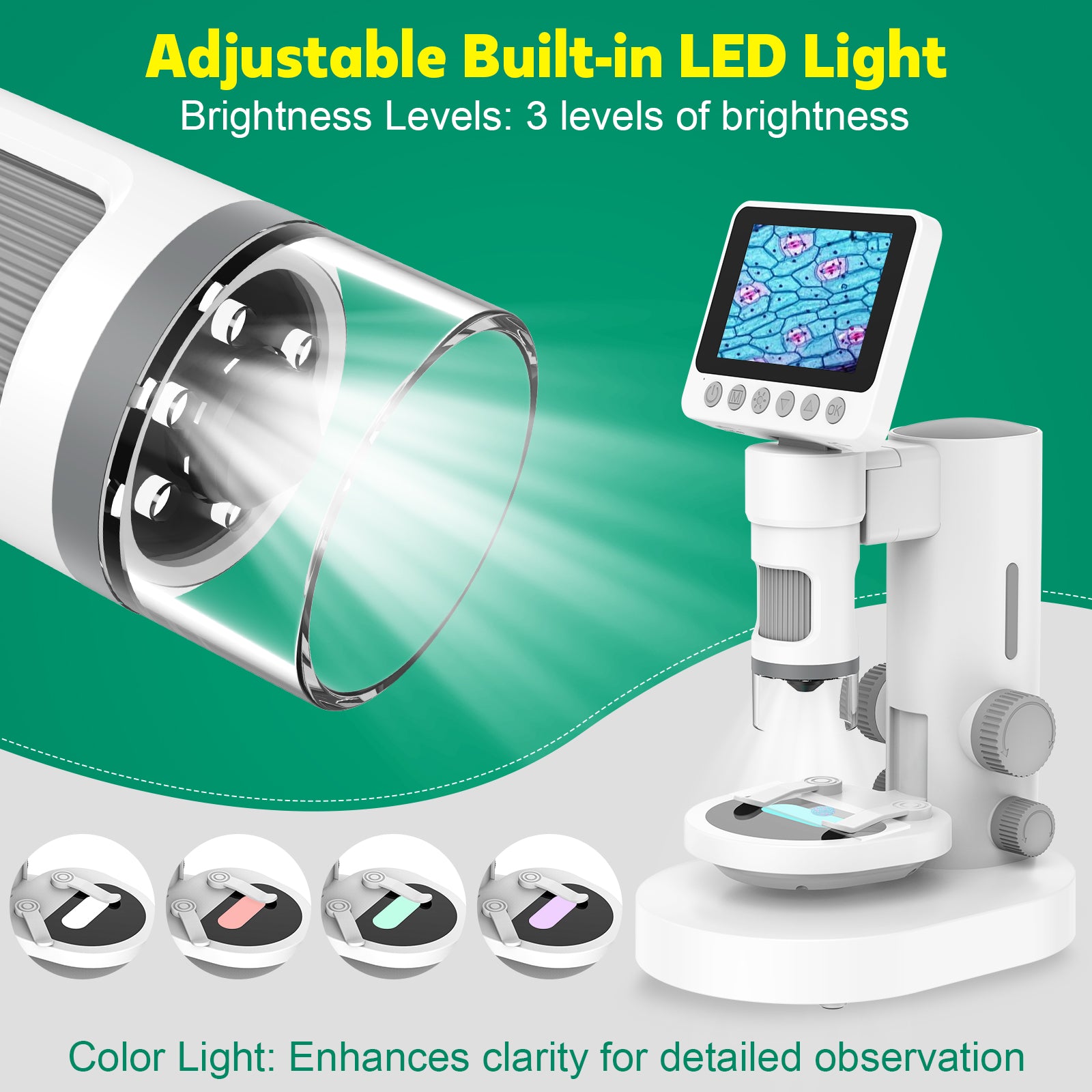 HUTACT Digital Microscope with 3.5” LCD Screen, Microscope for Kids & Adults, 1000X Microscope with Detachable Stand LED Lights, PC Compatible, 10MP HD Imaging, Microscope Kit with Slides