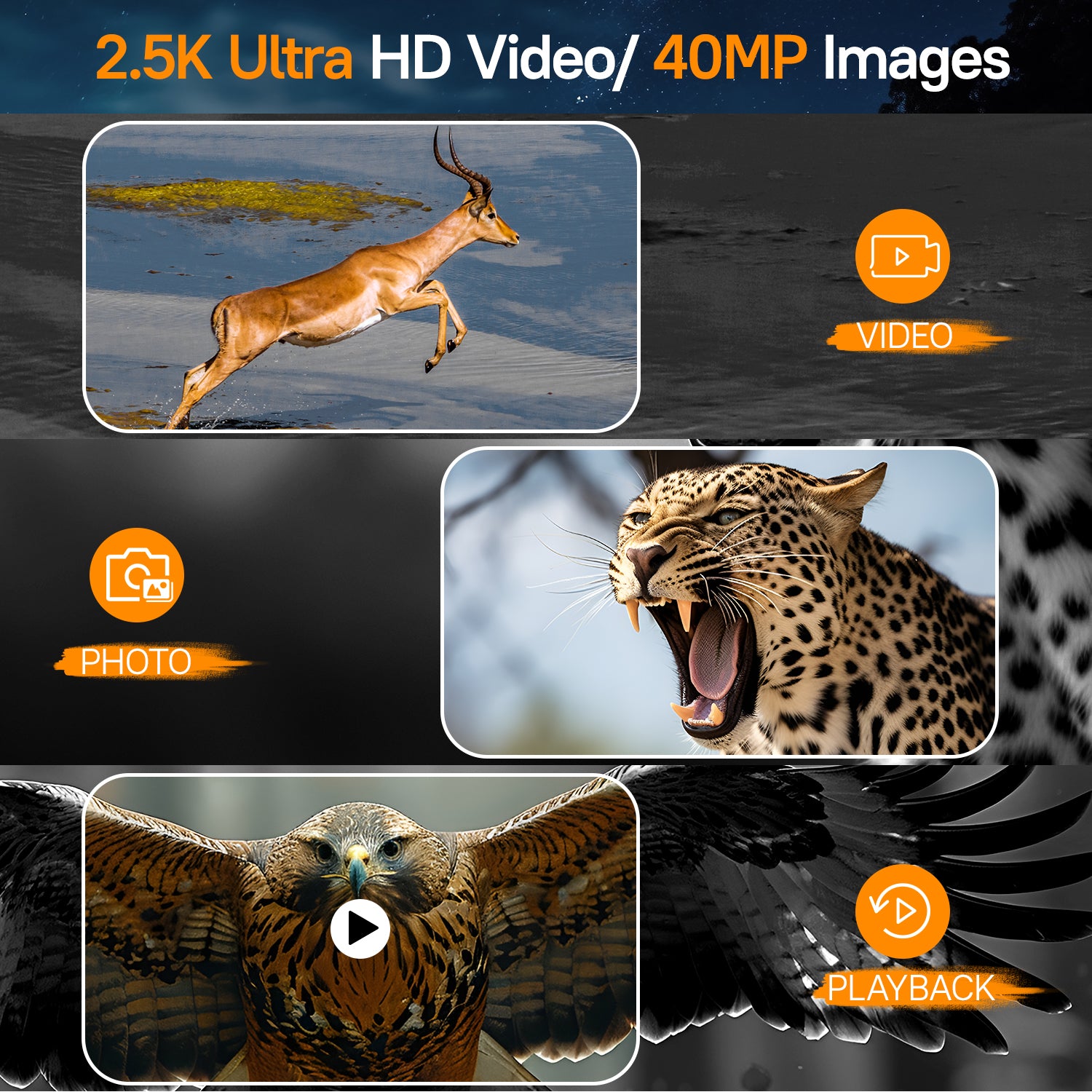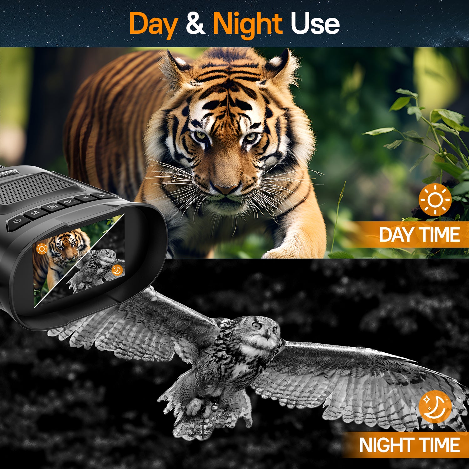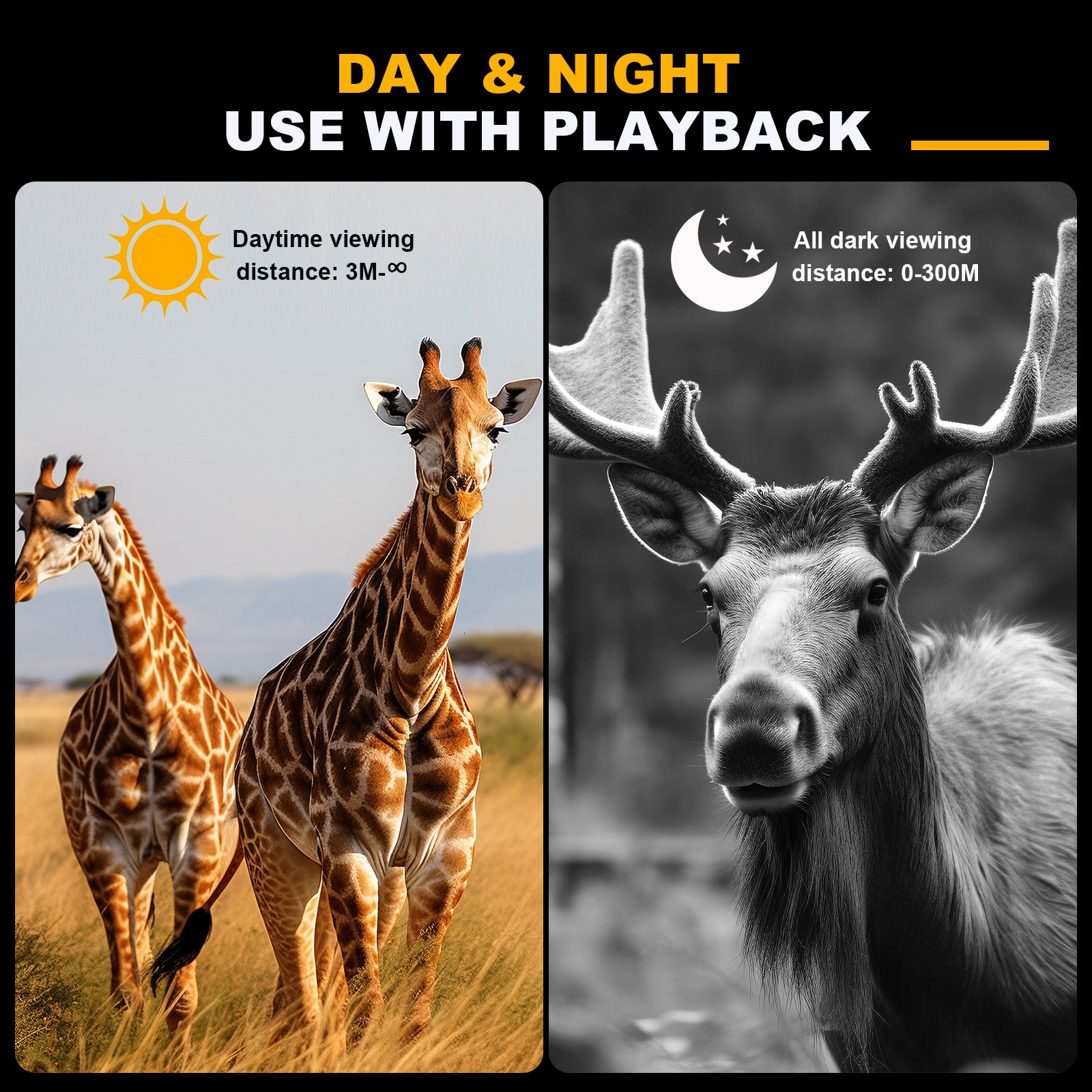 - Complete Accessory Kit -- This night vision set comes with everything you need to get started: a 32GB TF card for ample storage, a USB data cable for easy playback, a neck strap for hands-free use, and a protective camera box to keep your goggles safe during transport. Ready to use right out of the box, it’s the perfect kit for night-time explorers.