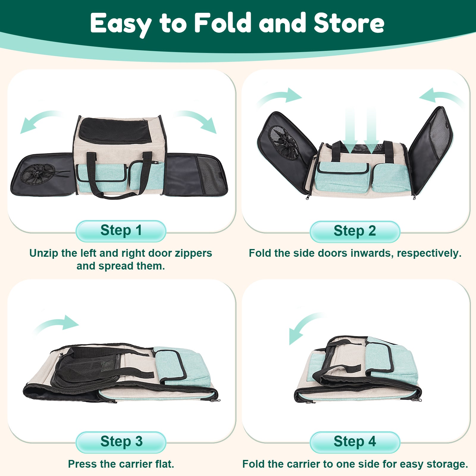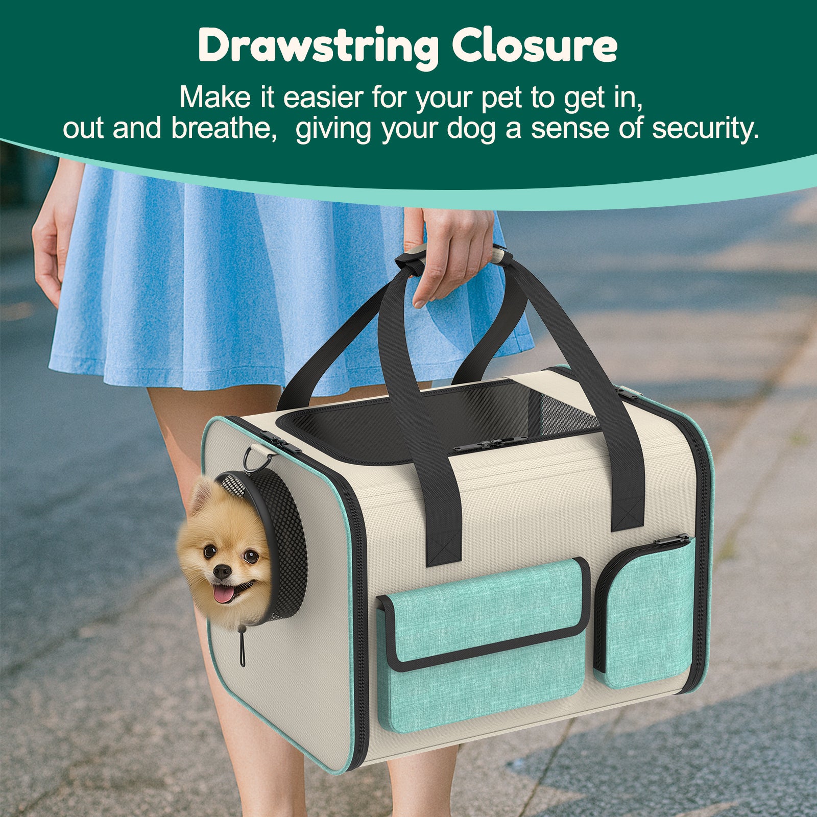 - Convenient Features: The Portable Pet Carrier includes two side pockets for storing essentials, a circular ventilation window with a drawstring, and a top zippered entrance for easy access.