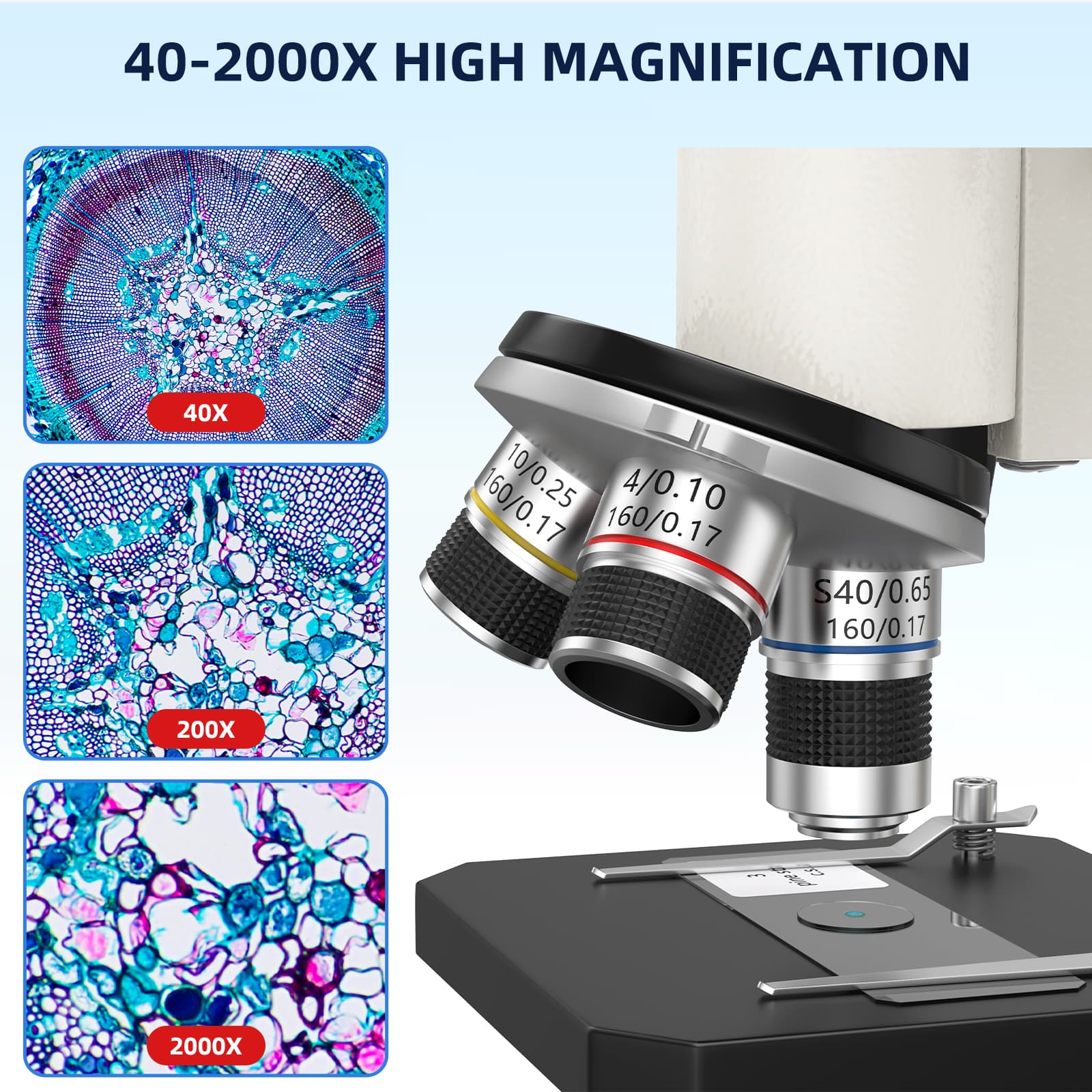 - High-Power Compound Microscope -- With a maximum magnification of 2000x, this compound microscope allows users to explore the microscopic world in great detail.