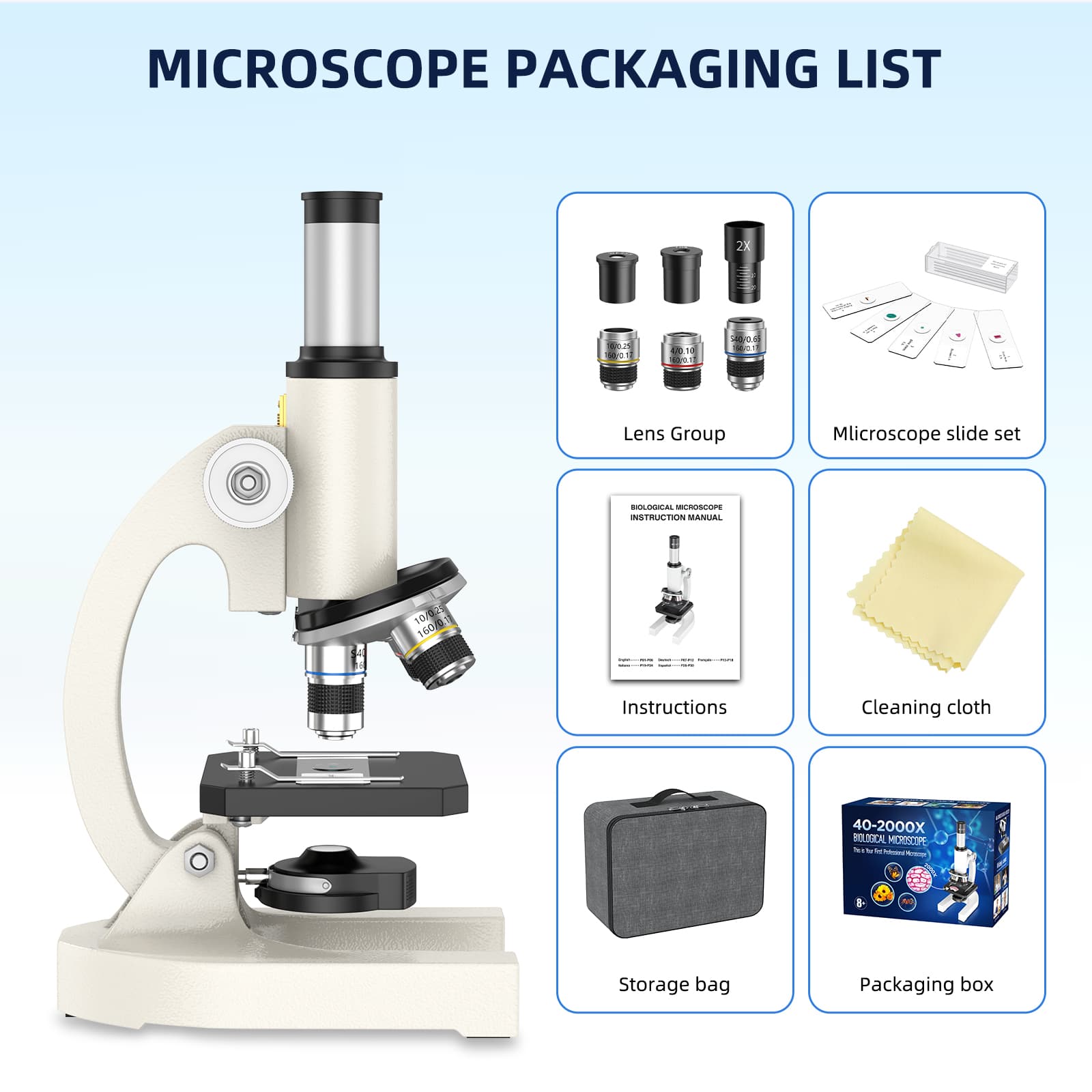 USCAMEL Microscope Set for Beginner, Kids Microscope 2000x Compound Microscope for Students Adults w/Prepared Slides