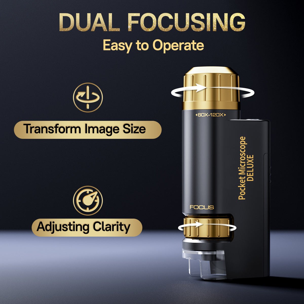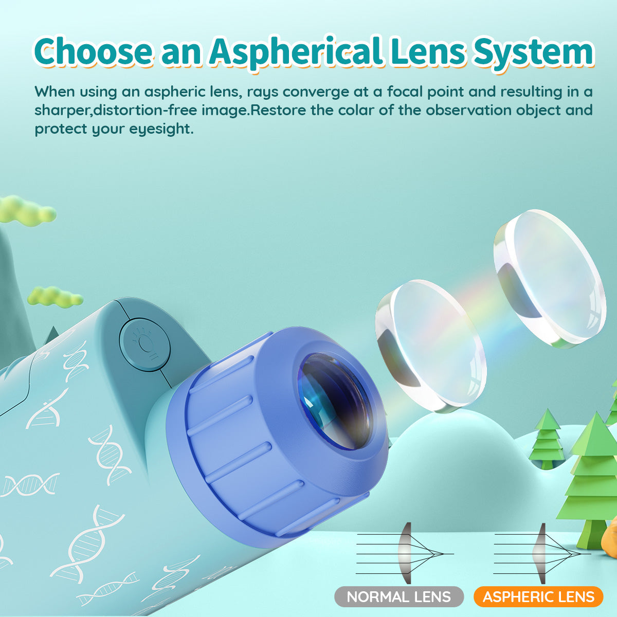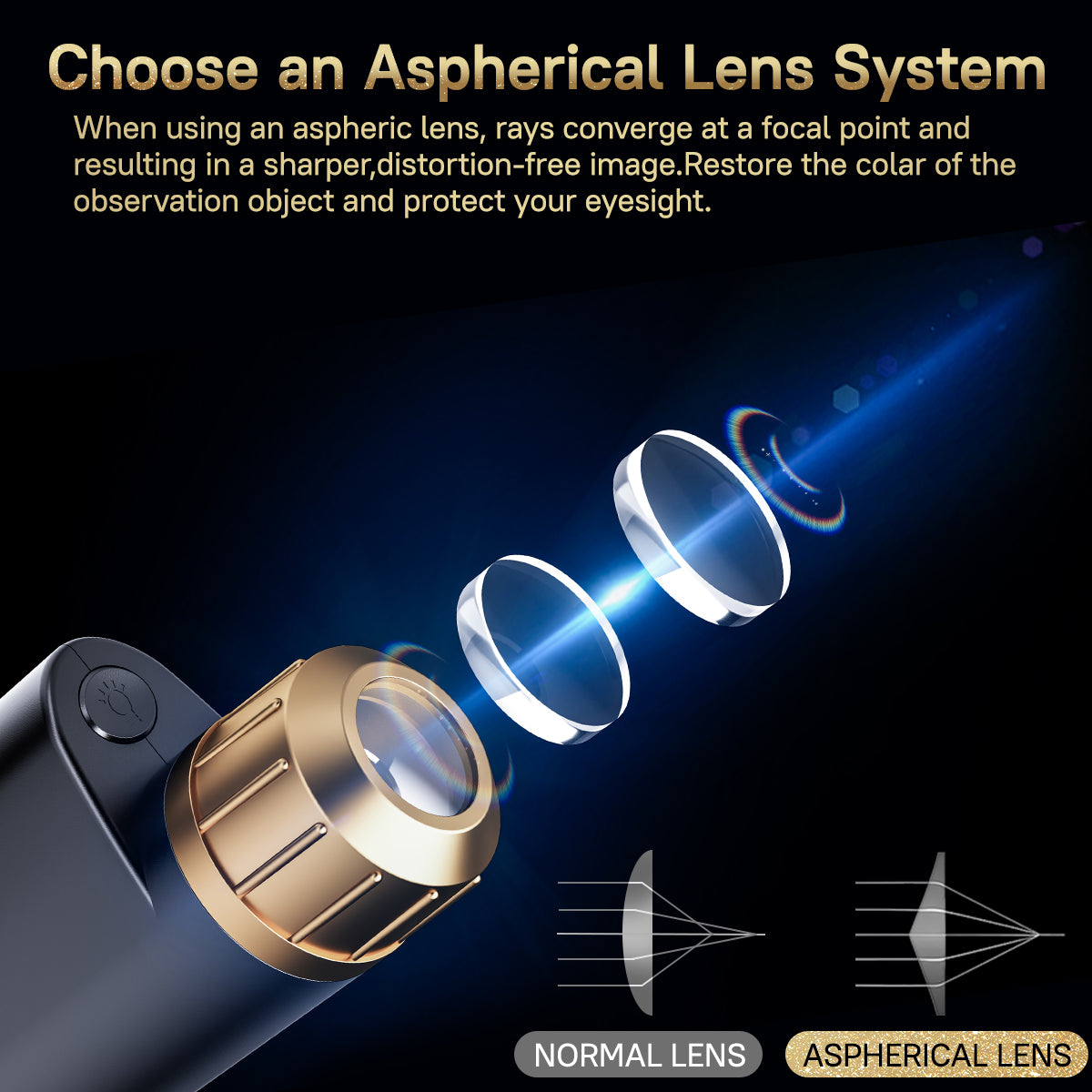 - 【HD Aspherical Lens】Using an aspheric lens, rays converge at a focal point and resulting in a sharper, distortion-free image. The mini microscope magnification equip with a double-layer focus system, which make it easier to focus.