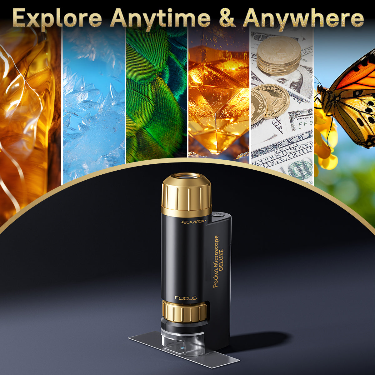- 【Switchable Multiples】USCAMEL pocket microscope can magnify 60X to 120X. A powerful magnification range can meet the needs of daily use. The microscope focuses easily, which can see the beauty of nature that the naked eye can't see.